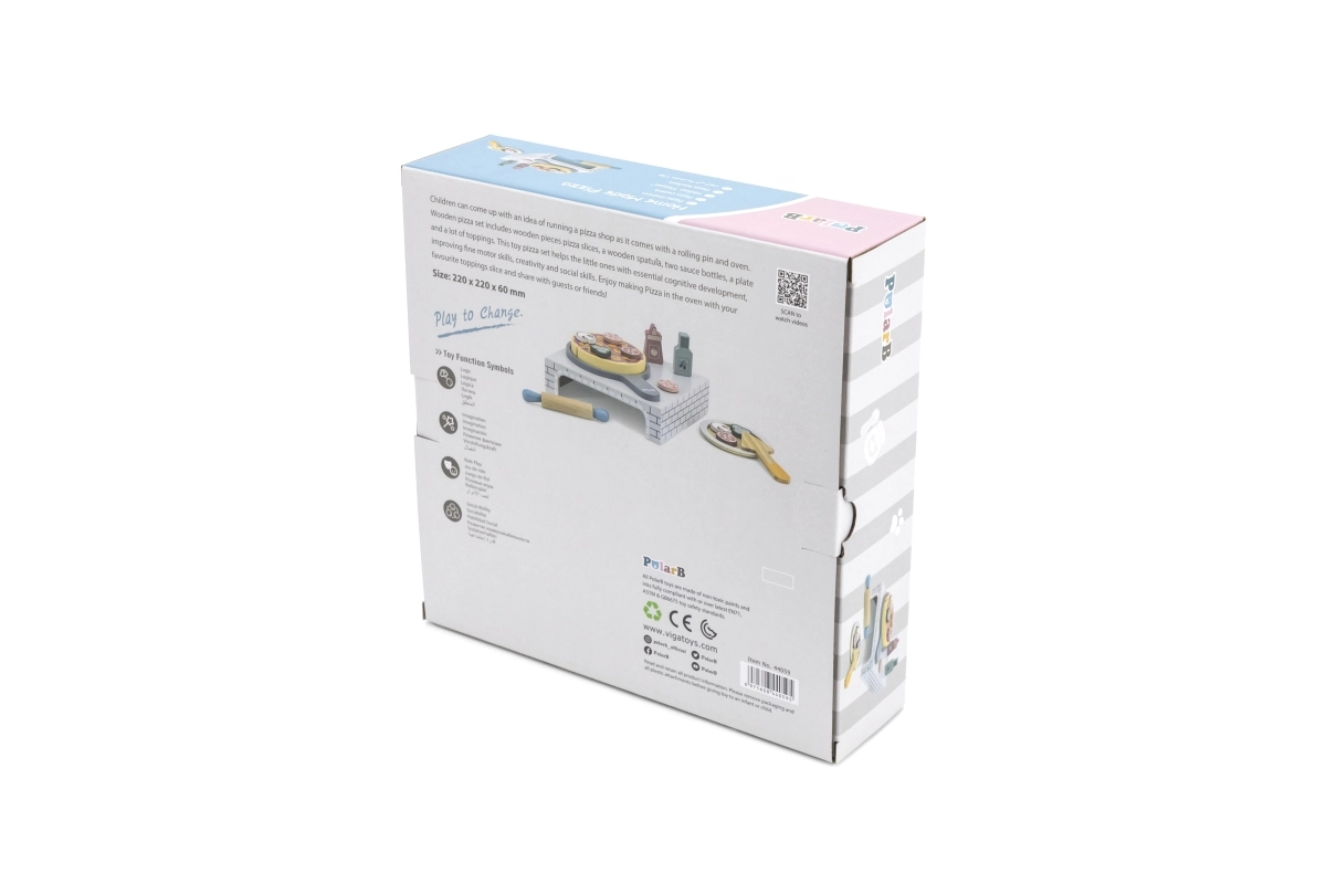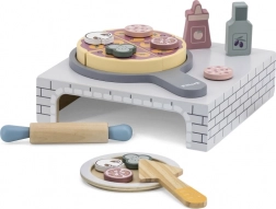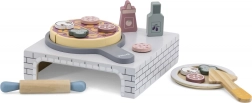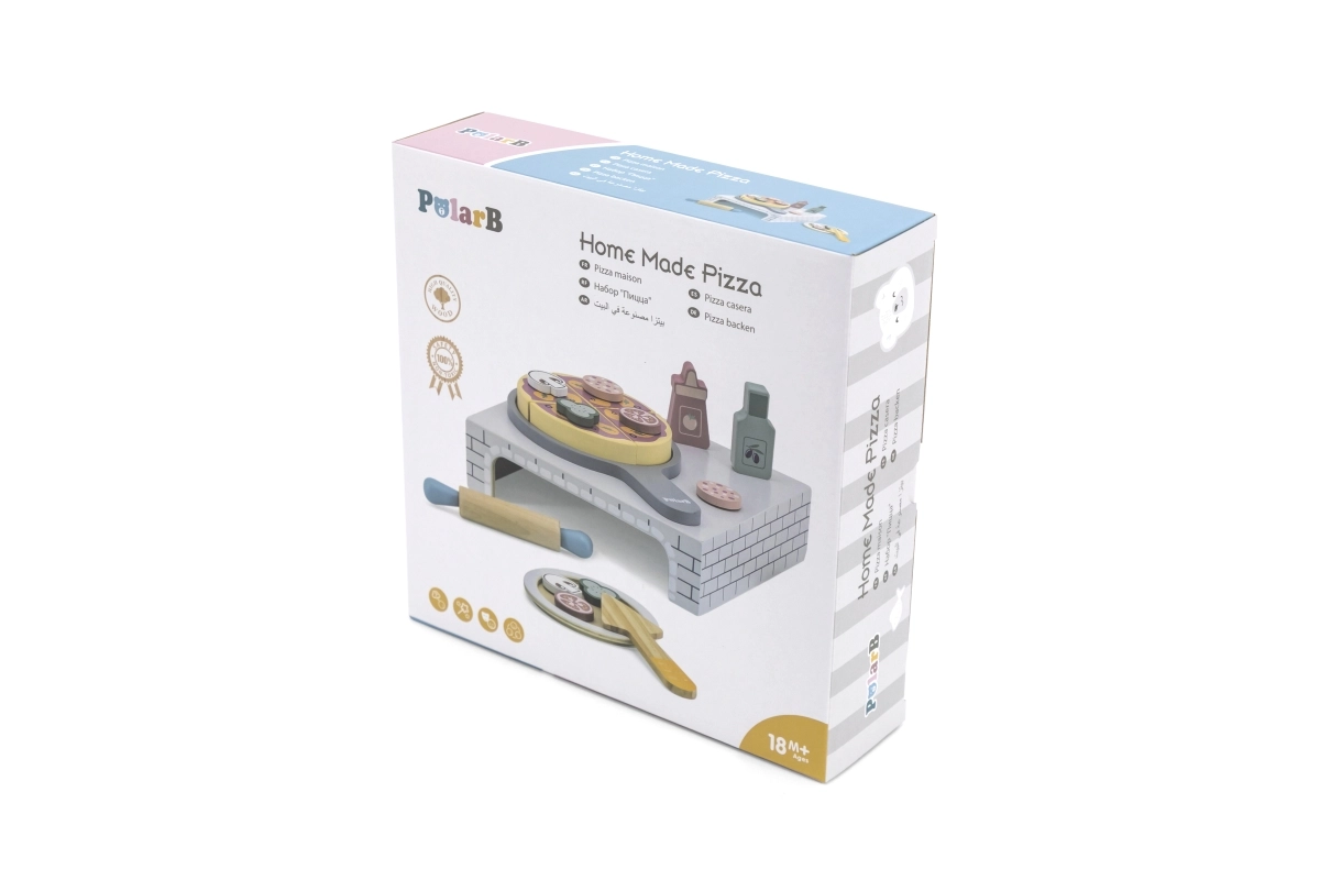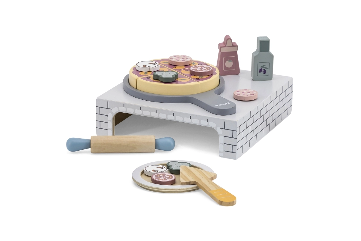 Descoperă farmecul pizzeriei la tine acasă cu acest set de joacă din lemn de înaltă calitate pentru micul bucătar. Setul include un cuptor pentru pizza, o pizza de tăiat cu toppinguri detașabile, sucitor, farfuriuță și alte accesorii pentru un joc realist. Susține motricitatea fină, creativitatea și jocul de rol începând de la 18 luni.