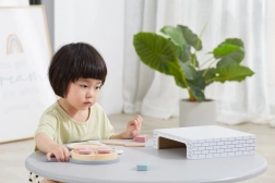 Lemnul neted, în nuanțe pastelate, este plăcut la atingere și rezistent la joaca de zi cu zi. Sigur pentru copii de la 18 luni.