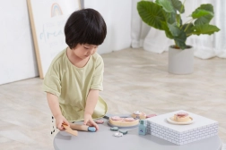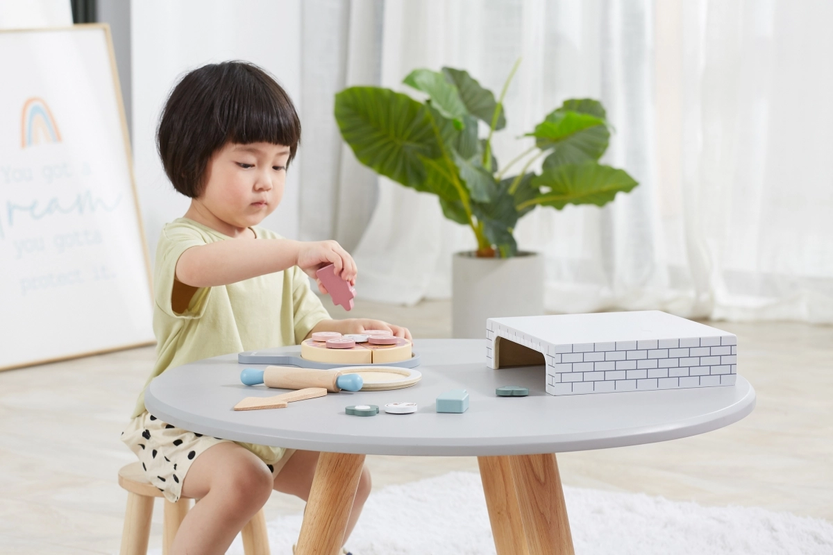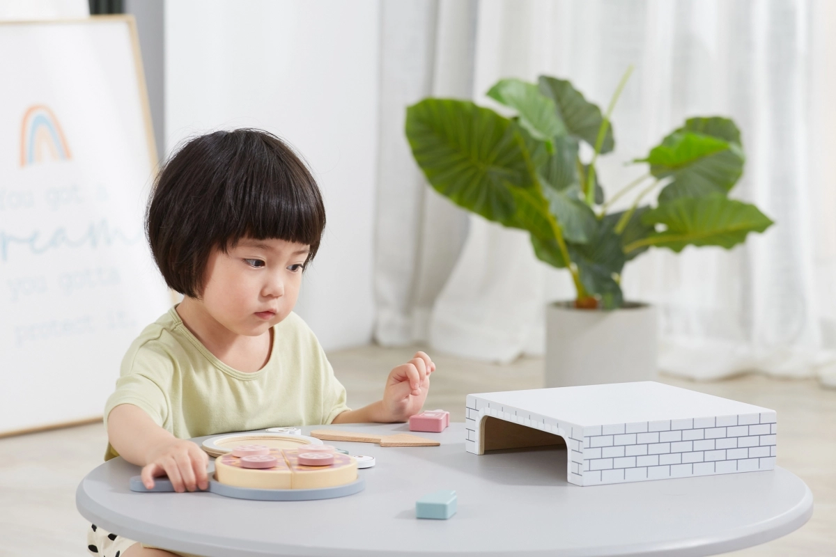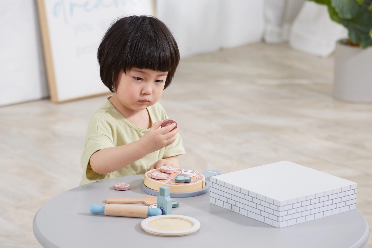 Acest set din lemn pentru pizza de casă transformă camera copilului într-o pizzerie primitoare. Cei mici pot întinde aluatul, așeza ingredientele, coace în cuptor și apoi servi pe farfuriuță – exact ca în realitate. Toppingurile detașabile și piesele de tăiat susțin coordonarea mână–ochi și dezvoltarea imaginației.