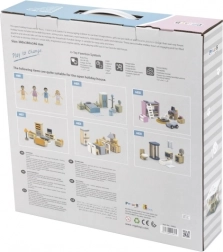 Interiorul poate fi completat cu seturi tematice de mobilier (bucătărie, living, dormitor, camera copilului și baie), care extind posibilitățile de joacă și susțin învățarea despre funcționarea gospodăriei.