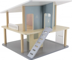 Această căsuță modernă din lemn oferă copiilor un spațiu pentru joc liber și dezvoltarea imaginației. Construcția deschisă permite acces facil la toate încăperile, iar cele două niveluri și terasa invită la crearea propriilor povești. Datorită designului portabil, o puteți muta și depozita cu ușurință.