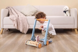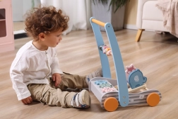 Drăgălașul mers din lemn pentru primii pași oferă sprijin stabil, deplasare înainte și înapoi și o mulțime de distracție senzorială. Datorită animăluțelor legănate (vulpe și elefant) care scot sunete la împingere, susține motricitatea, echilibrul și recunoașterea culorilor și a animalelor. Ideal pentru copii de la 18 luni.