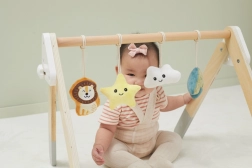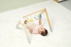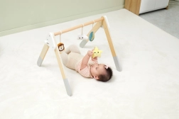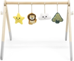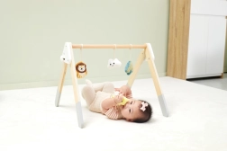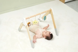 Acest spalier baby gym din lemn de înaltă calitate este potrivit încă de la 1 lună. Aspectul natural și culorile plăcute se potrivesc oricărui interior. Jucăriile suspendate captează interesul bebelușului prin sunete și diverse texturi, care stimulează văzul, auzul și simțul tactil.