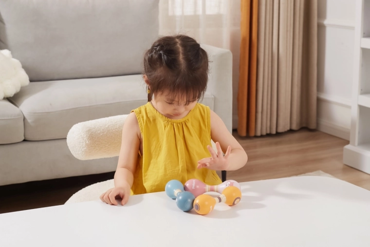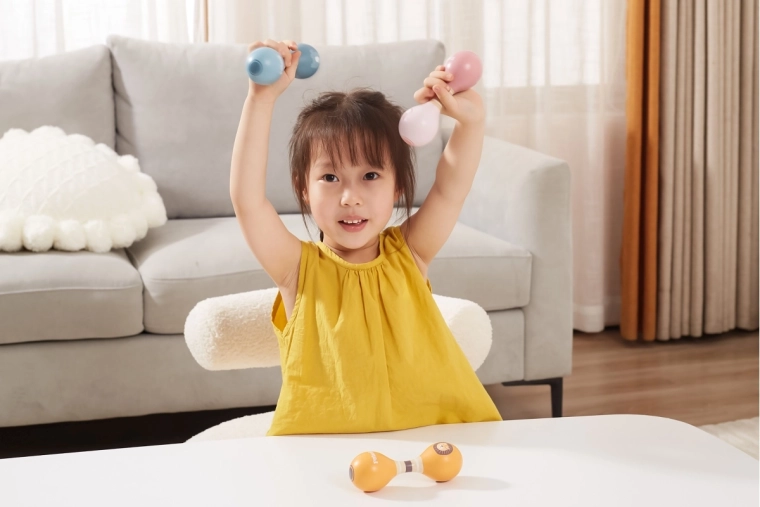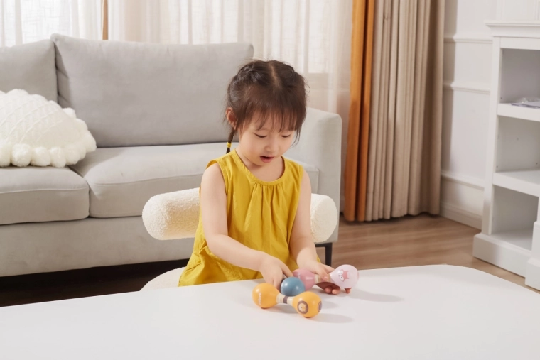 Forma ergonomică se potrivește în mâinile mici ale copiilor, sprijinind coordonarea mână–ochi și primele încercări de scuturare și rostogolire.