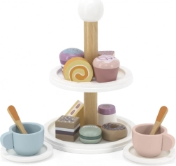 Setul de ceai din lemn este ideal pentru primele jocuri sociale ale copiilor. Suportul pe două niveluri cu deserturi, două farfurii, două ceșcuțe și lingurițe creează scena perfectă pentru ceaiul de după-amiază sau o masă festivă. Datorită realizării atente din lemn durabil, jucăria este plăcută la atingere și sigură pentru mâinile mici.