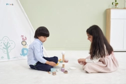 Elegantul suport pe două niveluri găzduiește toate prăjiturelele și creează o scenă realistă pentru ceaiul de după-amiază. Copiii își exersează cu ușurință motricitatea fină prin aranjare.