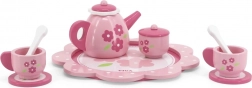 Setul conține tot ce este necesar pentru a juca petreceri de ceai: ceainic, ulcică, zaharniță, cești, farfurioare, lingurițe și tăviță.
