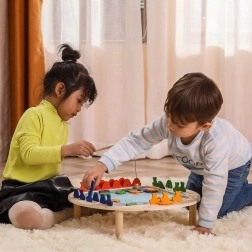 Joc din lemn de pescuit peştişori este ideal pentru copii care doresc să-şi dezvolte abilităţile prin joc şi competiţie. Acest joc educativ oferă distracţie şi în acelaşi timp sprijină dezvoltarea motricităţii fine şi a abilităţilor de coordonare.