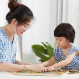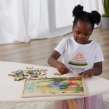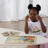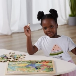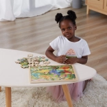 Tăvița solidă din lemn menține piesele la locul lor, ușurează transportul și depozitarea și îi ajută pe copii să se concentreze la asamblarea imaginii.