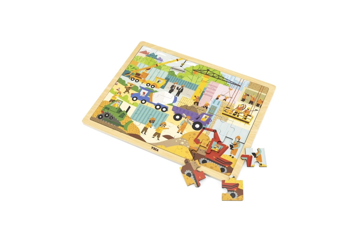 Imaginea mare, de 40 × 30 cm, este plină de detalii – utilaje de construcții, muncitori și semne de circulație care captează atenția și motivează la asamblare repetată. Puzzle-ul este conceput pentru copii de la 24 de luni și ajută la dezvoltarea răbdării, concentrării și percepției spațiale.