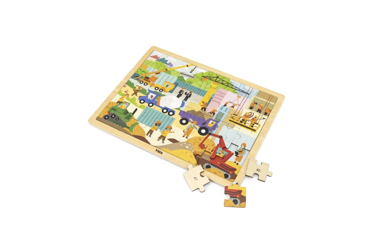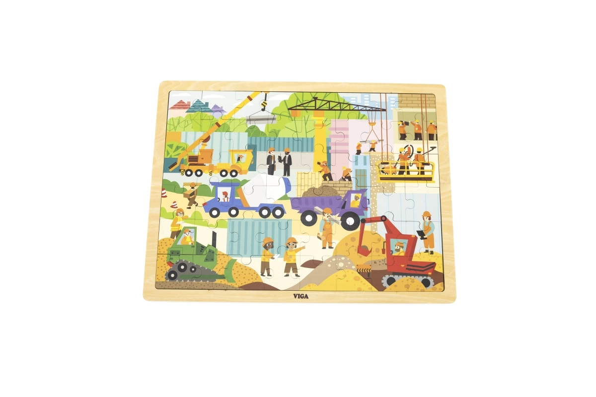 Acest puzzle din lemn de calitate, cu temă de șantier, este alegerea ideală pentru primele puzzle-uri mai mari. Datorită celor 48 de piese tăiate cu precizie, copiii își exersează coordonarea mână–ochi și învață să recunoască formele și culorile. Suportul din lemn solid menține imaginea întreagă și facilitează manipularea.
