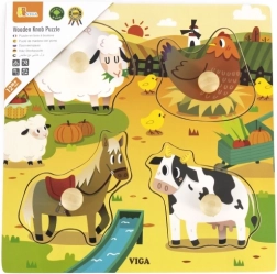 Acest puzzle din lemn este alegerea perfectă pentru părinții care doresc să susțină dezvoltarea abilităților motorii ale copilului lor. Oferă ilustrații frumoase cu animale de fermă – oi, găini, cai și vaci. Fiecare piesă este dotată cu un buton practic care permite prinderea și manipularea ușoară pentru mânuțe mai mici. Puzzle-ul este conceput cu atenție la siguranță și durabilitate, fiind ideal pentru copiii de la 12 luni.