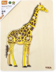 Acest puzzle de încastrat din lemn cu motiv de girafă este o primă alegere excelentă pentru cei mai mici. Piesele au butoni practici, ceea ce face manipularea ușoară și susține în mod natural prinderea corectă și răbdarea. Calitatea VIGA garantează durabilitate și plăcerea jocului.