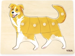 Placa din lemn rezistentă și marginile netede asigură un joc sigur și de durată, acasă și la grădiniță. Motivul clar al cățelului îi îmbie pe cei mici la asamblare.