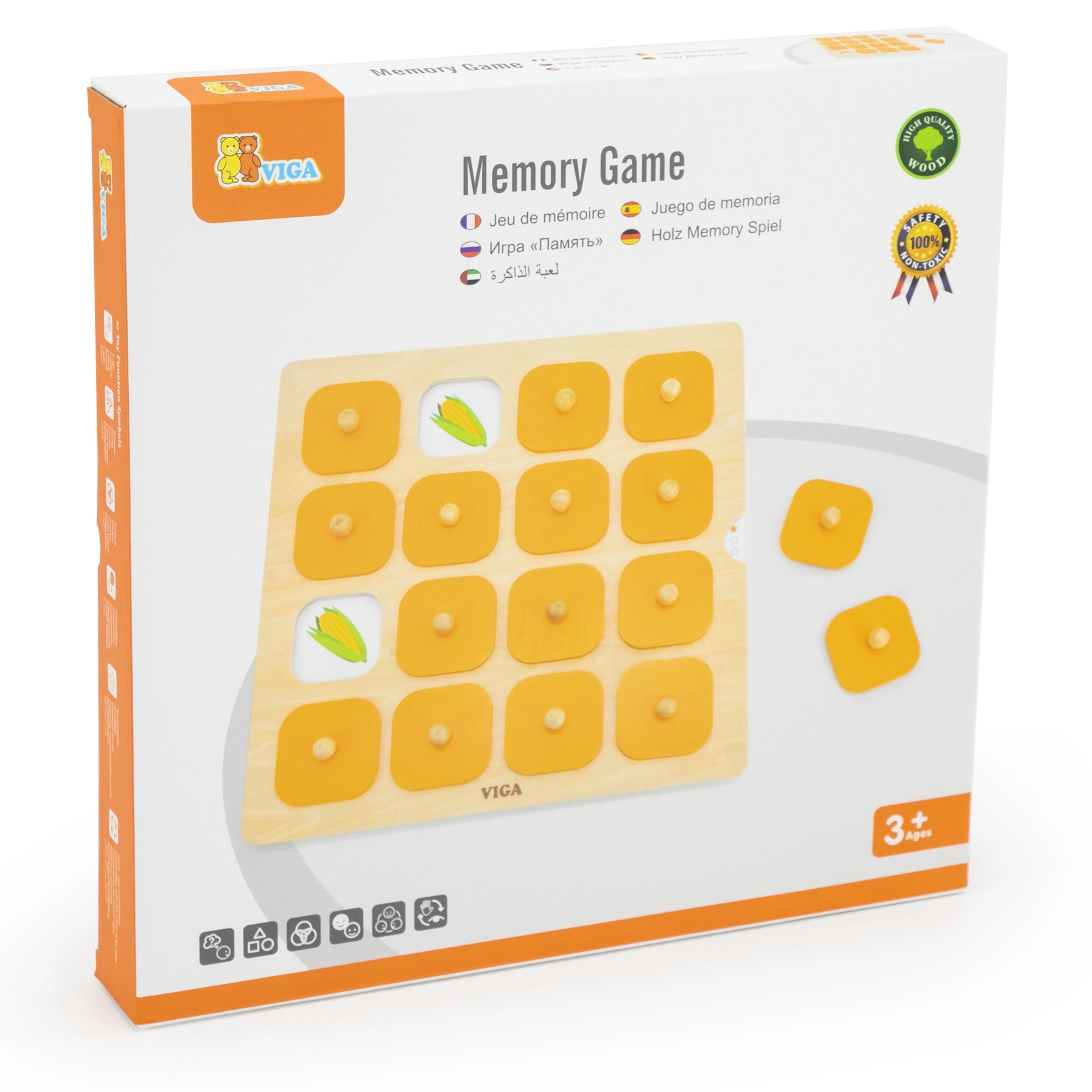 Acest joc de memorie din lemn, de înaltă calitate, de la brandul VIGA, este o modalitate excelentă de a stimula la copii dezvoltarea cognitivă și percepția vizuală. Copilul ridică piesa albastră de butonul din lemn, memorează imaginea și caută perechea identică – o mecanică simplă, care distrează și educă.