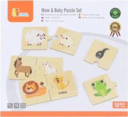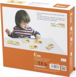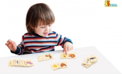 Acest set din lemn de înaltă calitate conține 24 de piese care formează 12 perechi de animale (părinte + pui). În timpul jocului, copiii descoperă lumea animalelor, învață noțiuni noi și exersează coordonarea mână–ochi. Piesele sunt rezistente, plăcute la atingere și ușor de apucat de mâinile mici.