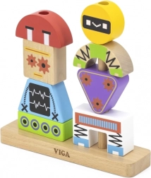Jocul colorat din lemn VIGA pentru copii de la 3 ani susține creativitatea, motricitatea fină și gândirea logică. Din 8 piese robuste, copiii construiesc veseli roboți după cărțile cu modele sau folosindu-și propria imaginație. Realizat în siguranță din lemn de fag cu vopsele netoxice și ambalaj cadou practic.