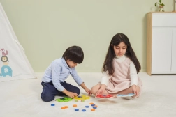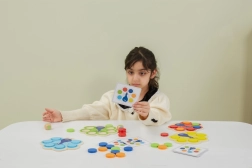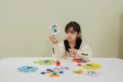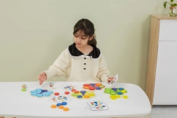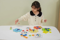 Copiii asociază discurile în funcție de carduri sau de aruncarea zarului, însușindu-și natural culorile și exersând atenția și logica.