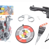 Setul distractiv cu arbaletă pentru copii de la 3 ani conține tot ce este necesar pentru jocuri pline de adrenalină – de la arbaletă și țintă până la cătușe din plastic și pistol.