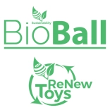 Sprijin pentru joaca sustenabilă cu logourile BioBall și ReNew Toys, care evidențiază producția ecologică și responsabilitatea.