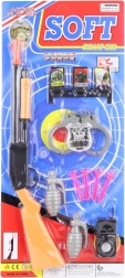 Acest set de acțiune îi va încânta pe toți micii pasionați de jocuri pline de aventură. Componenta principală este o pușcă din plastic cu armare, care trage săgeți cu ventuze – acestea aderă în siguranță pe suprafețe netede. În pachet găsiți, de asemenea, grenade, stație radio, cătușe, insignă și o țintă pentru antrenarea preciziei.