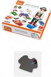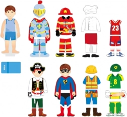 Acest set magnetic de îmbrăcat oferă copiilor posibilități nelimitate de a combina coafuri, pălării și articole de îmbrăcăminte. Figurina magnetică a băiatului stă pe o bază stabilă, astfel încât manipularea este comodă, iar schimbarea hainelor devine intuitivă și distractivă.