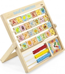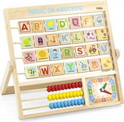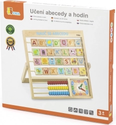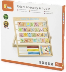 Alfabet și ceas din lemn în limba cehă. Copiii pot învăța literele, numerele și pot dobândi o idee generală despre citirea ceasului. Fiecare literă are pe verso un cuvânt pentru o memorare mai bună. Dimensiuni aprox. 32,5 x 32 x 2,3 cm. Dimensiuni ambalaj aprox. 34 x 32,5 x 3 cm. Vârsta 3+