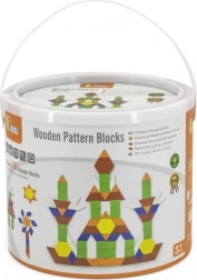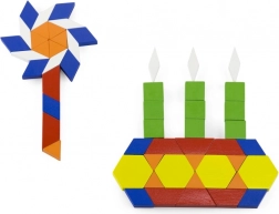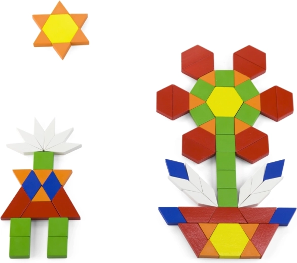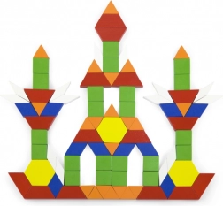 Numărul mare de blocuri plate din lemn, în diverse forme și culori, stimulează imaginația și dezvoltă reprezentarea spațială. Copiii pot alcătui modele, animăluțe și chiar imagini întregi.