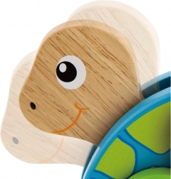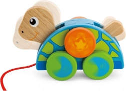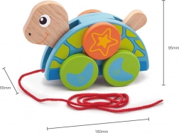 Această broască țestoasă de tras, colorată și din lemn, este concepută pentru a-i motiva pe copii să meargă, pentru a susține coordonarea mișcărilor și pentru a dezvolta natural motricitatea fină și grosieră. Construcția robustă din lemn și marginile plăcut rotunjite asigură joacă în siguranță, iar culorile puternice și designul jucăuș stimulează percepția vizuală.