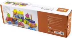 Construcția robustă, marginile netede și vopselele sigure asigură o durată lungă de viață și un joc fără riscuri. Setul este ideal ca primul set de construcție din lemn pentru micii pasionați de trenuri.