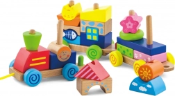 Această locomotivă de tras din lemn, de înaltă calitate, cu trei vagoane, oferă o mulțime de posibilități pentru a asambla și reconfigura formele colorate. Copiii pot exersa coordonarea mână–ochi, pot învăța culorile și formele și, în același timp, se pot distra trăgând trenulețul prin casă.