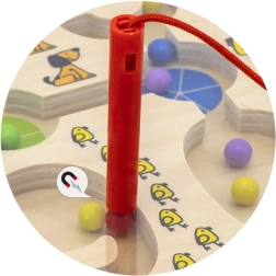 Conține un creion magnetic pentru deplasarea ușoară a mărgelelor pe piste, ceea ce ajută la dezvoltarea motricității fine.