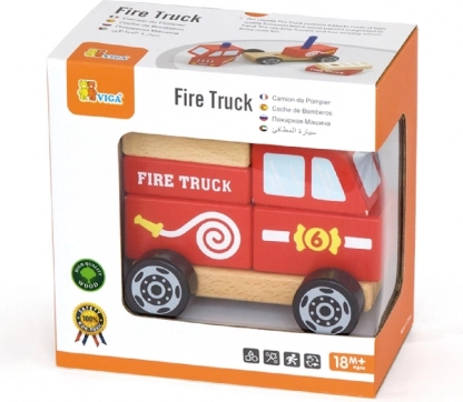Așază piesele din lemn pe șasiu și creează-ți propriul camion de pompieri. Copiii își exersează răbdarea și coordonarea pas cu pas.