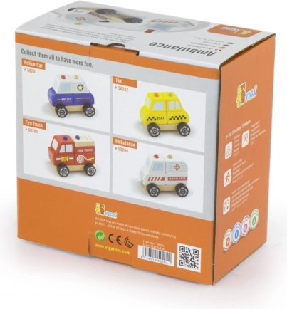 Această ambulanță din lemn combină excelent un puzzle de asamblare cu o mașinuță mobilă. Copiii pot monta piesele în forma ambulanței și apoi se pot bucura de deplasare datorită roților care se rotesc lin. Lemnul robust, vopselele de calitate și marginile rotunjite asigură joacă sigură și durabilitate îndelungată.