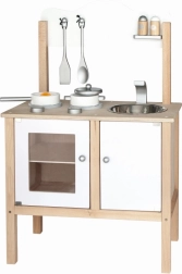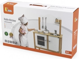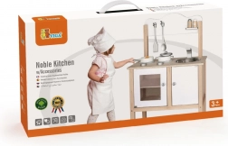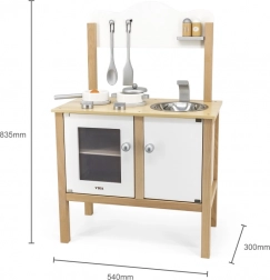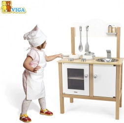Bucătăria din lemn pentru copii marca Viga este ideală pentru micii bucătari care doresc să imite gătitul. Această construcție din lemn cu finisaj modern alb și lemn natural este durabilă și stilată, potrivindu-se oricărui dormitor pentru copii.