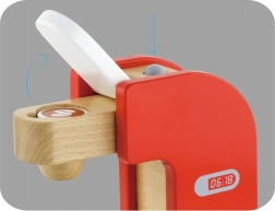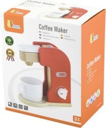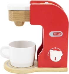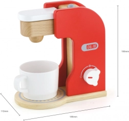 Espressorul roșu cu accente naturale din lemn, imită un dispozitiv real și oferă o experiență distractivă de joacă.