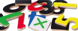 Conține 37 de piese – cifre și simboluri matematice – care, datorită stratului magnetic, se prind sigur de tablă sau frigider. Construcția robustă din lemn multistrat și suprafețele netede, lăcuite asigură durabilitate mare și prindere confortabilă pentru mâinile mici.
