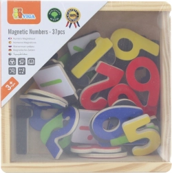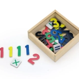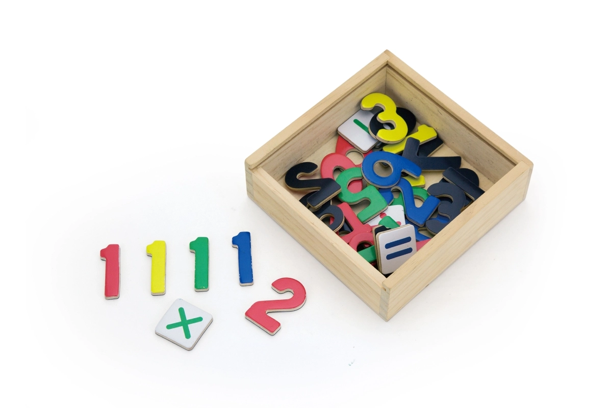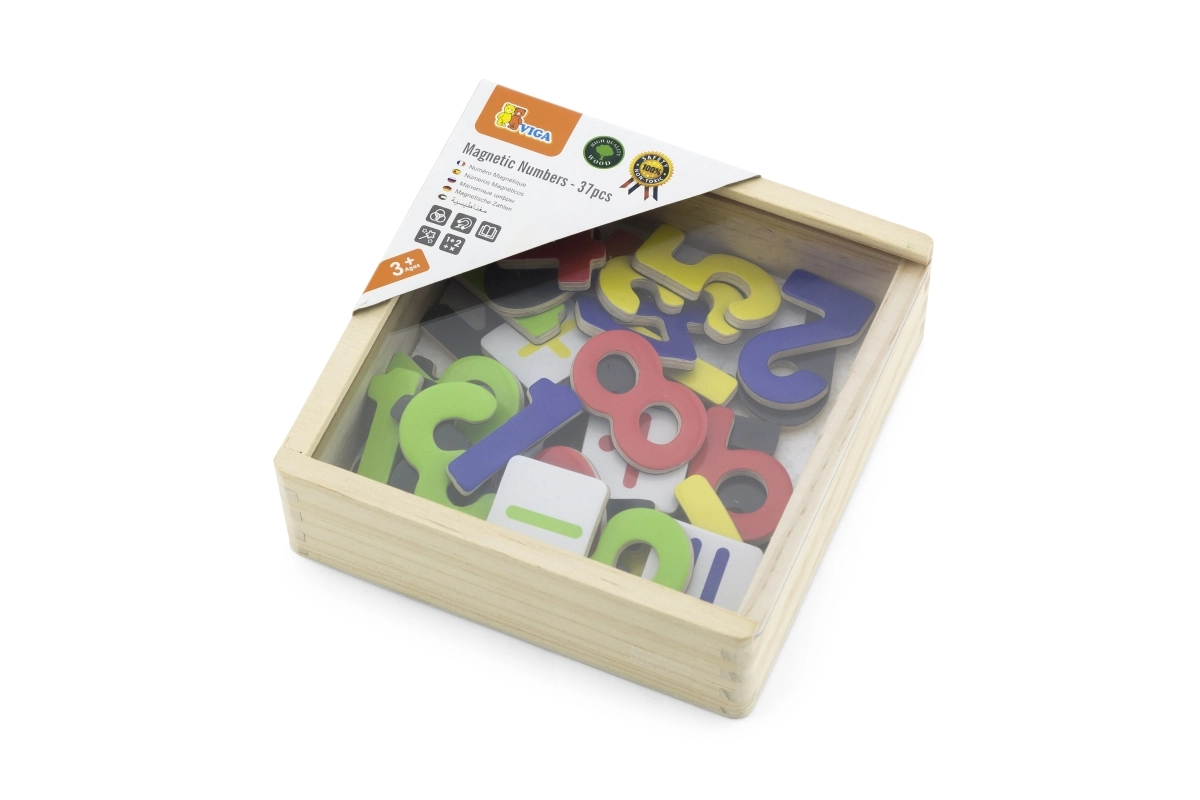 Acest set de numere magnetice din lemn și plastic, într-o cutie solidă din lemn, susține motricitatea fină, gândirea logică și primii pași în matematică. Datorită culorilor vii și formelor plăcut rotunjite, copiii pot forma cu ușurință numere și operații aritmetice de bază.