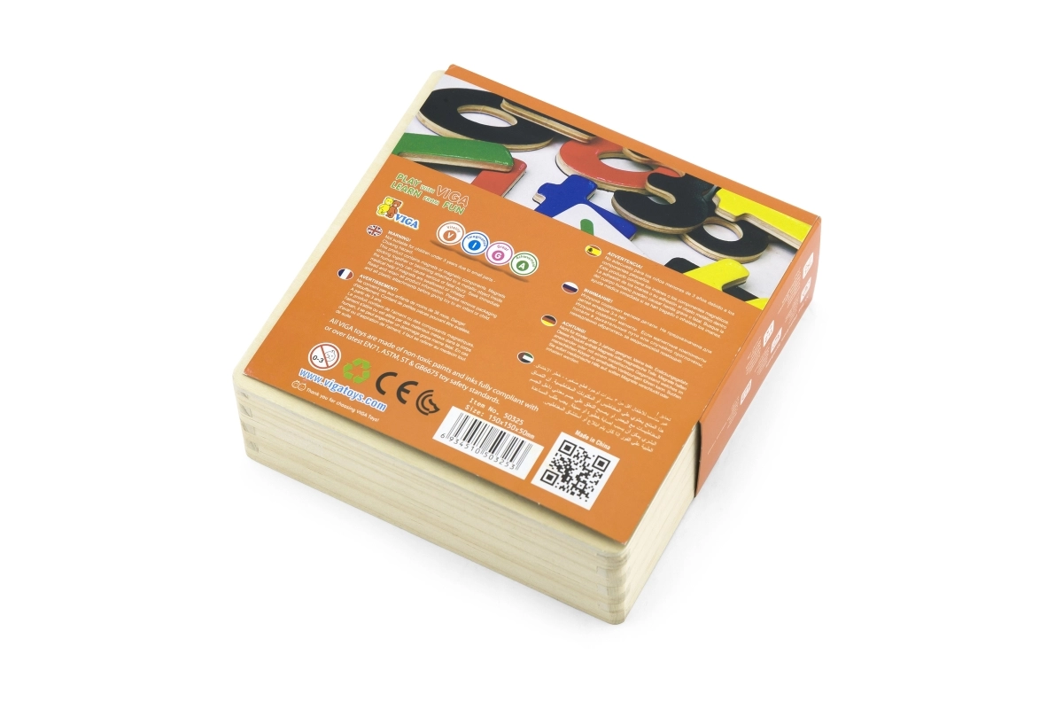Piese groase, potrivite pentru mâini mici, și o cutie practică din lemn pentru strângere rapidă și transport.