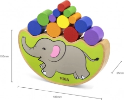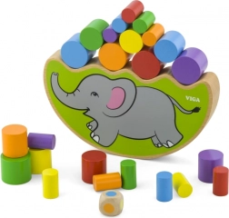 - Bază de echilibru în formă de elefant, cilindri din lemn colorați, zar colorat