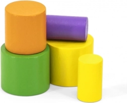 Baza arcuită în formă de elefant și cilindrii de mărimi diferite îi învață pe copii să echilibreze cu finețe și să așeze piesele cu precizie.