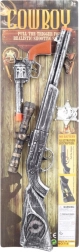Acest set distractiv de cowboy le oferă copiilor o experiență autentică a jocurilor despre Vestul Sălbatic. Pușca mare, cu o lungime de aprox. 50 cm, este echipată cu vizor, pistolul este confortabil de ținut, iar datorită efectului sonor de împușcătură jocul pare și mai realist – toate acestea fără a fi nevoie de baterii.