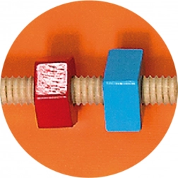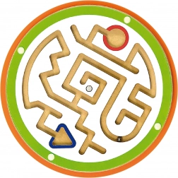 Labirintul cu bilă și șuruburile pe filet antrenează precizia degetelor, priza și coordonarea mână–ochi. Copiii deplasează bila și exersează răbdarea și concentrarea.