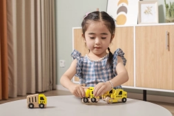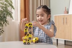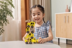 Fiecare vehicul are roți funcționale pentru rulare lină, iar unele piese sugerează elemente mobile (de ex. cupă, malaxor sau macara), stimulând curiozitatea naturală și dezvoltarea coordonării mână–ochi.