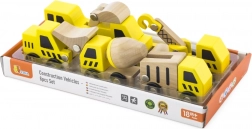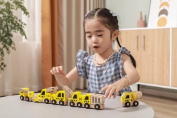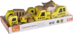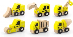 Acest set de calitate conține 6 vehicule de construcții diferite, în galben intens, cu elemente naturale din lemn – ideal pentru primele curse pe podea și pentru jocuri pe șantier. Datorită formelor rotunjite și construcției durabile din lemn, mașinuțele sunt sigure și plăcute la atingere.