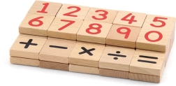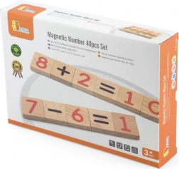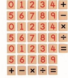 Numere din lemn magnetice reprezintă un ajutor ideal pentru învățarea abilităților aritmetice de bază pentru copiii de la 3 ani. Setul conține 40 de magneți cu numere și simboluri, care permit depozitarea ușoară într-o săculeț textil practic.