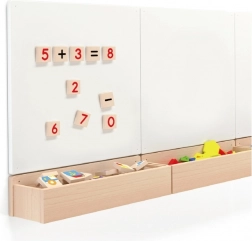 Această suntă de numere din lemn magnetice este un instrument excelent pentru învățarea interactivă a matematicii. Datorită magneților, copiii pot alcătui și dezasambla ușor ecuații simple pe orice suprafață magnetică.