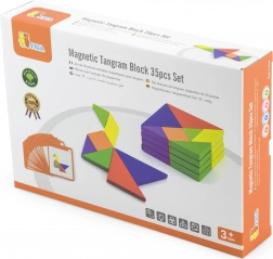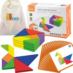 Acest tangram colorat din lemn este un instrument ideal atât pentru joaca acasă, cât și pentru educația preșcolară. Copiii creează imagini după cardurile incluse sau după propria imaginație, dezvoltând reprezentarea spațială, creativitatea și abilitatea de a rezolva probleme. Piesele atent finisate din lemn masiv sunt plăcute în mână și rezistente pentru utilizarea zilnică.