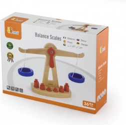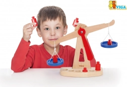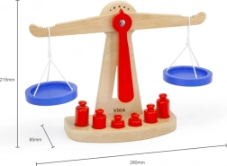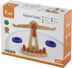 Cântarul echilibrat de lemn marca Viga este echipat cu două tăvițe albastre suspendate pe șnururi și conține șase greutăți roșii de diferite dimensiuni. Datorită designului său colorat și finisajului sigur, acest cântar oferă copiilor multă distracție. Cântarul este conceput pentru a motiva copiii să folosească imaginația și fantezia în jocul de rol, ajutându-i să înțeleagă conceptele matematice de bază și valoarea echilibrului.