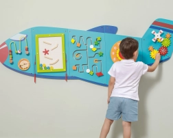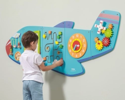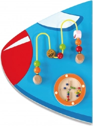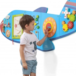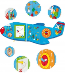 Tablă de perete din lemn Avion de brandul VIGA este o jucărie multifuncțională, compusă din cinci părți care împreună formează forma unui avion. Fiecare element oferă un alt tip de activitate pentru dezvoltarea distractivă a abilităților copiilor: